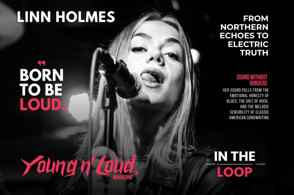 Linn does not set out to deliver messages. She writes from life as it unfolds. Still, her presence as a female front woman in blues and rock naturally carries weight. Hope threads its way through her work, sometimes quietly, sometimes boldly. Above all, she wants listeners to feel something, anything, even if they cannot immediately name it. Looking ahead, she feels drawn further into blues. More guitars. Grittier vocals. Deeper exploration. She is currently in the studio, and while details remain closely guarded, new music is on the horizon. Success, for Linn Holmes, is not measured in scale but in continuity. To keep creating. To keep sharing experiences. To keep finding magic in the unpredictable flow of it all. That is what keeps her Young N’ Loud.