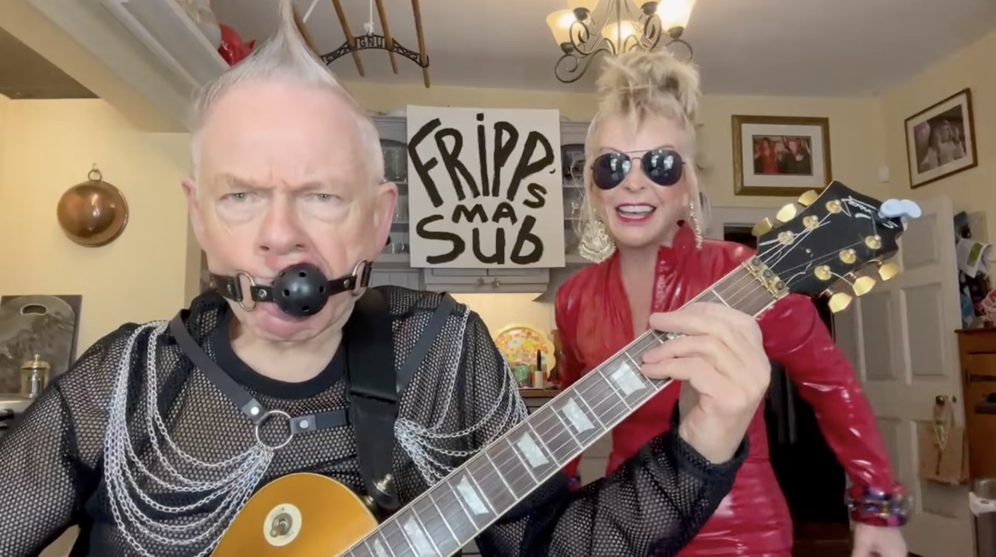 Toyah and Robert Fripp are back in the kitchen with a new episode of Sunday Lunch. This week they’re taking on X-Ray Spex‘s skronky punk classic “Oh Bondage! Up Yours!” and of course they are decked out in bondage gear, with Robert in gimp mode. This week’s sign: “Fripp’s Ma Sub.”